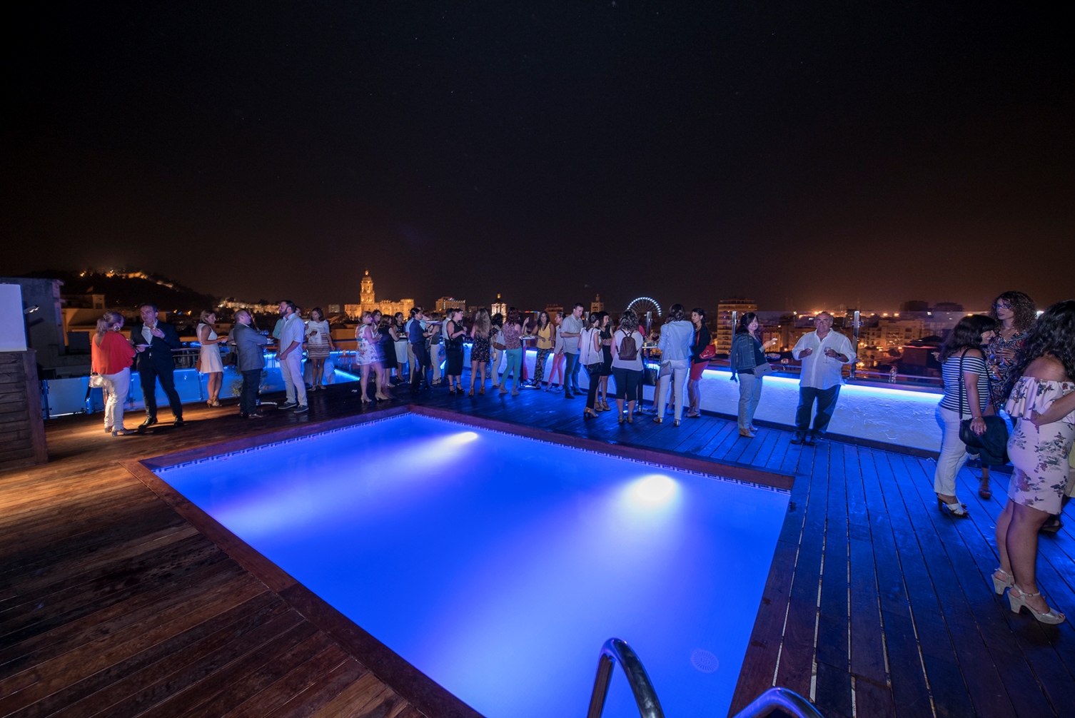 Cerca de 200 invitados, entre los que figuraban profesionales del sector turístico malagueño y periodistas, pudieron disfrutar anoche de las espectaculares vistas que ofrece la azotea de Sallés Hotel Málaga Centro, al tiempo que degustaban diferentes creaciones culinarias salidas de los fogones del establecimiento, sesión de DJ en directo y actuaciones de violín eléctrico.